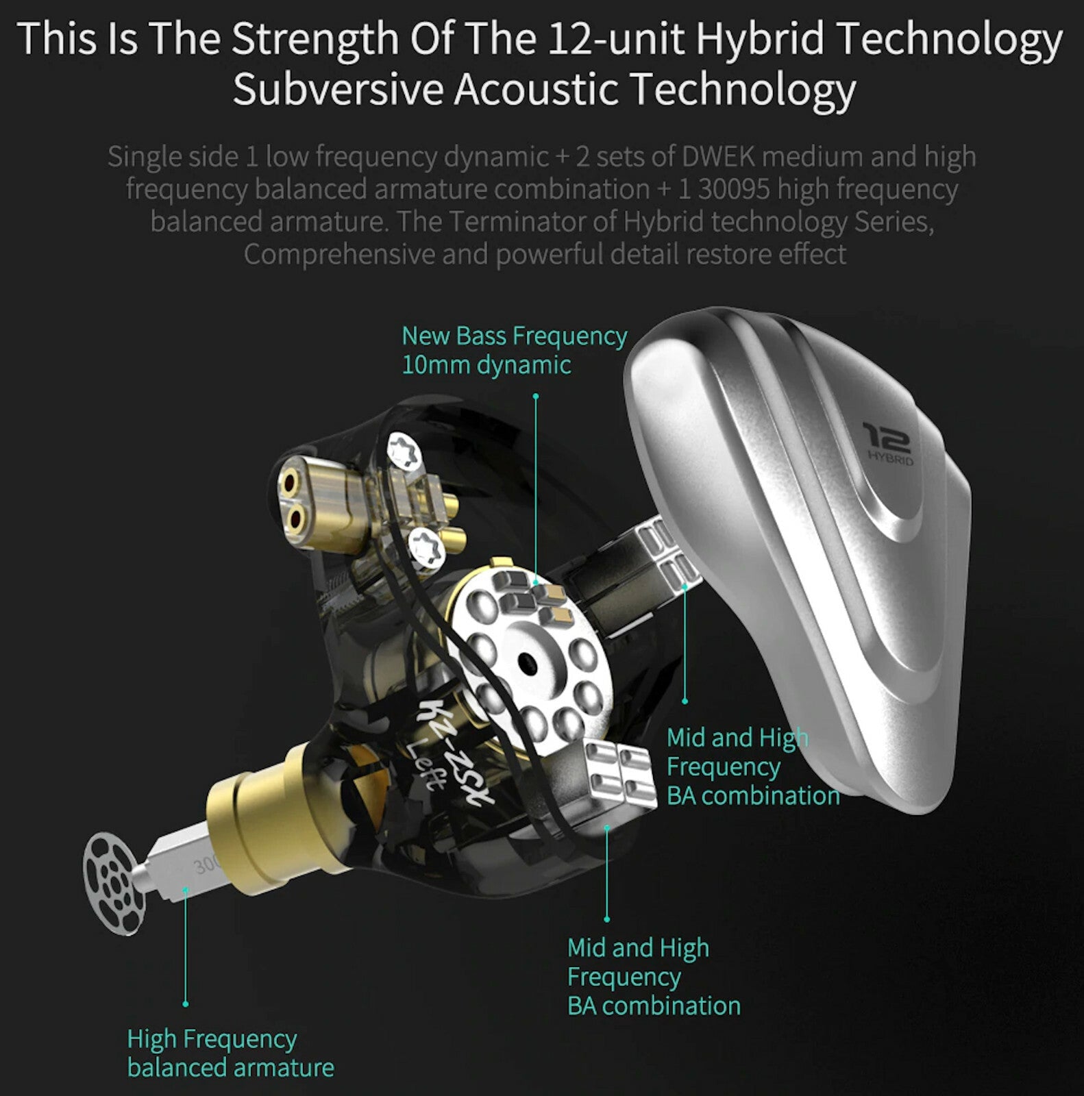 KZ ZSX Premium High-End Pro 12 Treiber HiFi In-Ear Kopfhörer Headset Cyan Grün