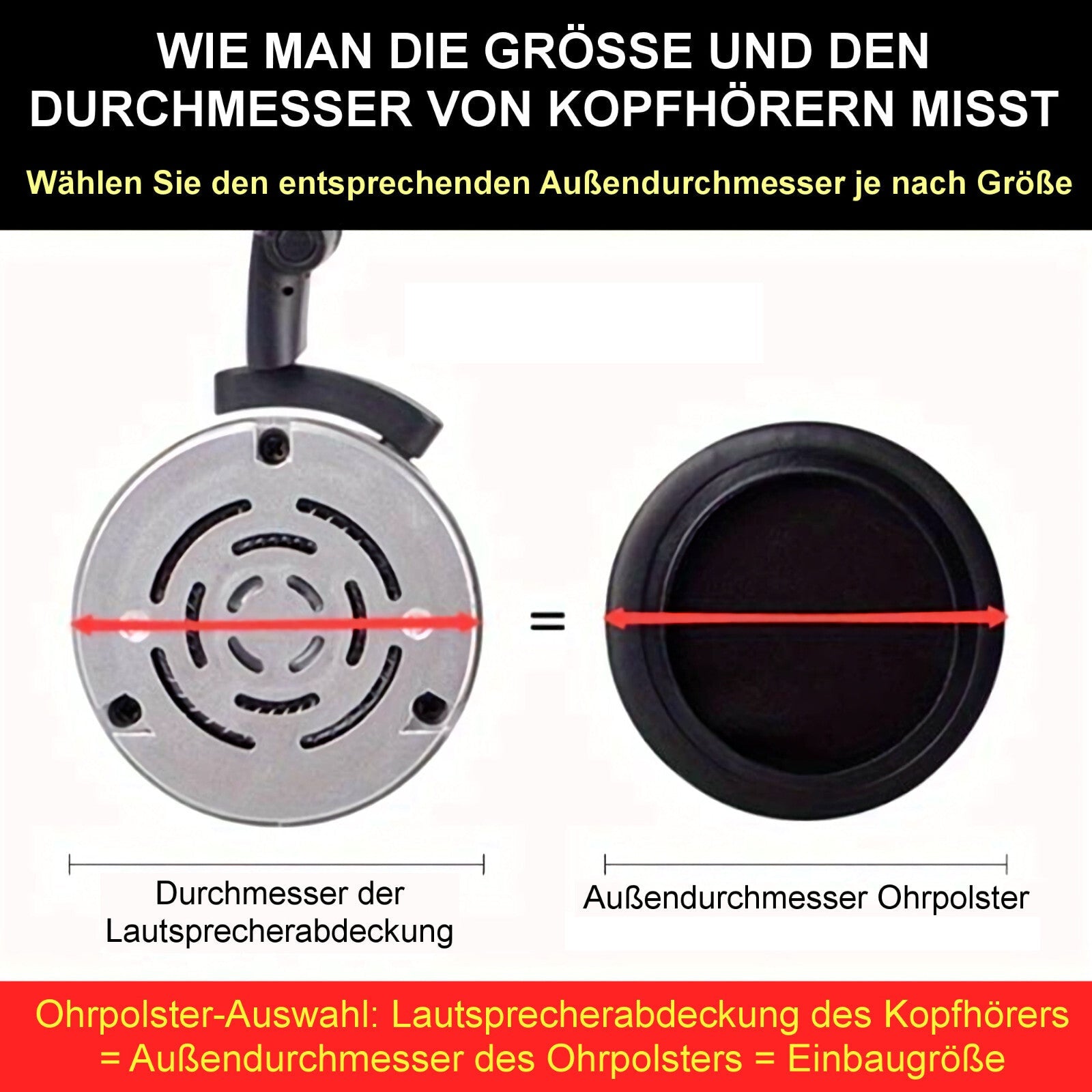 - Wenn Sie universelle Ersatzpolster kaufen, achten Sie auf die Maße, die zu Ihren Kopfhörern passen.